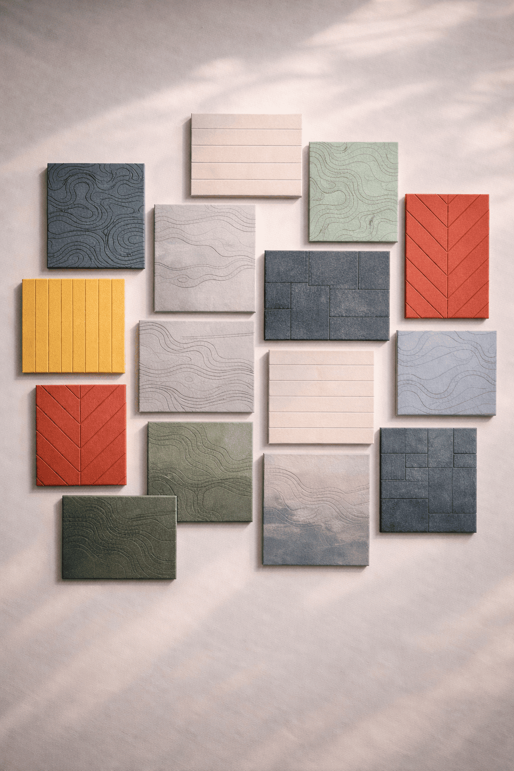Each piece is designed to enhance interior environments while maintaining acoustic control, turning walls into curated surfaces that communicate identity, atmosphere, and intention. From subtle graphic layers to bold artistic statements