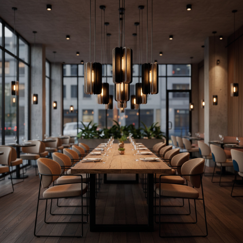 Hanging Spark introduces a cascading cluster of acoustic lights that bring vertical warmth to large dining rooms and hospitality interiors. It softens ambient noise while creating a sculptural, immersive experience.